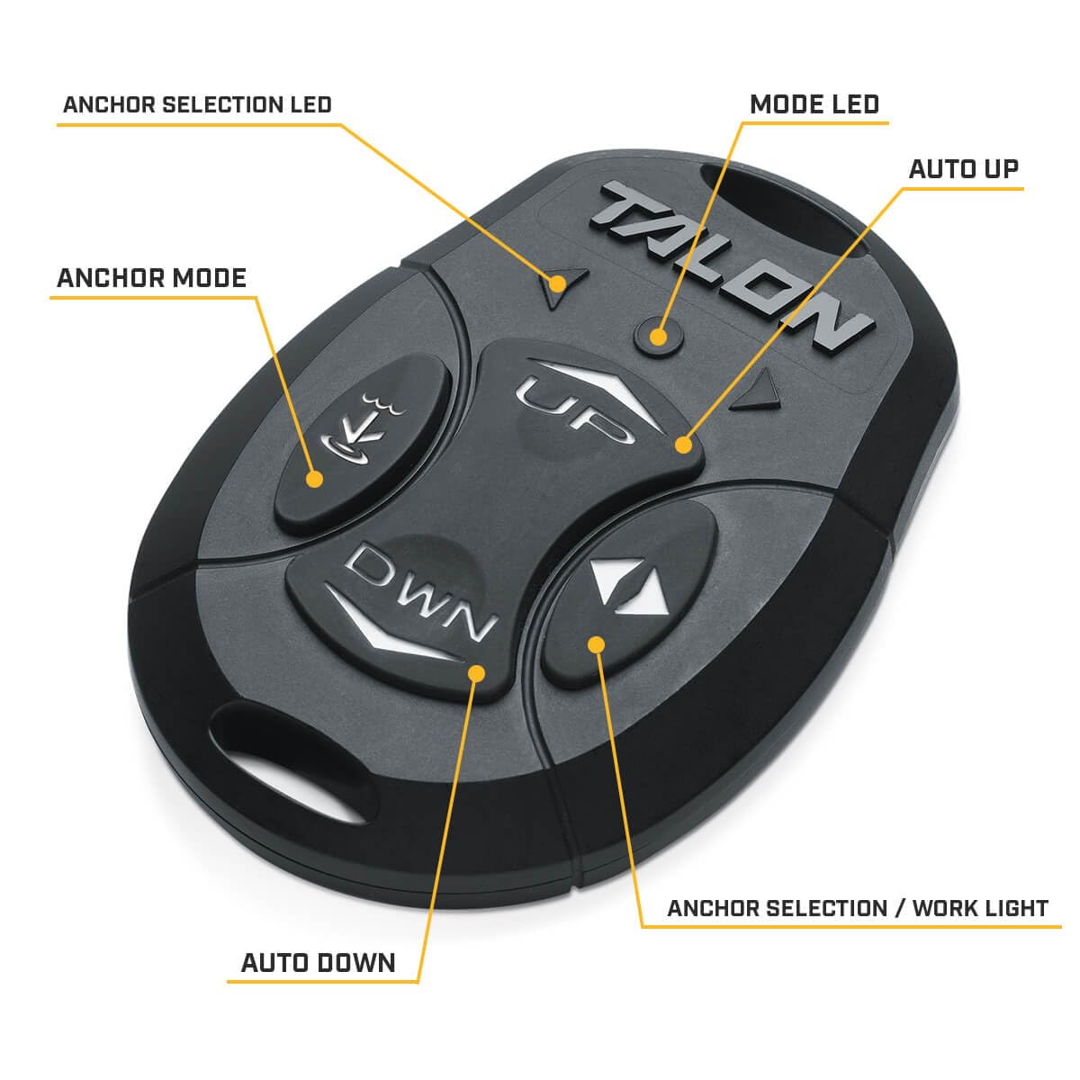 - Talon Remote: Lets you control stow, deploy, anchoring modes, multiple Talon selection and work light; comes standard with one wireless remote